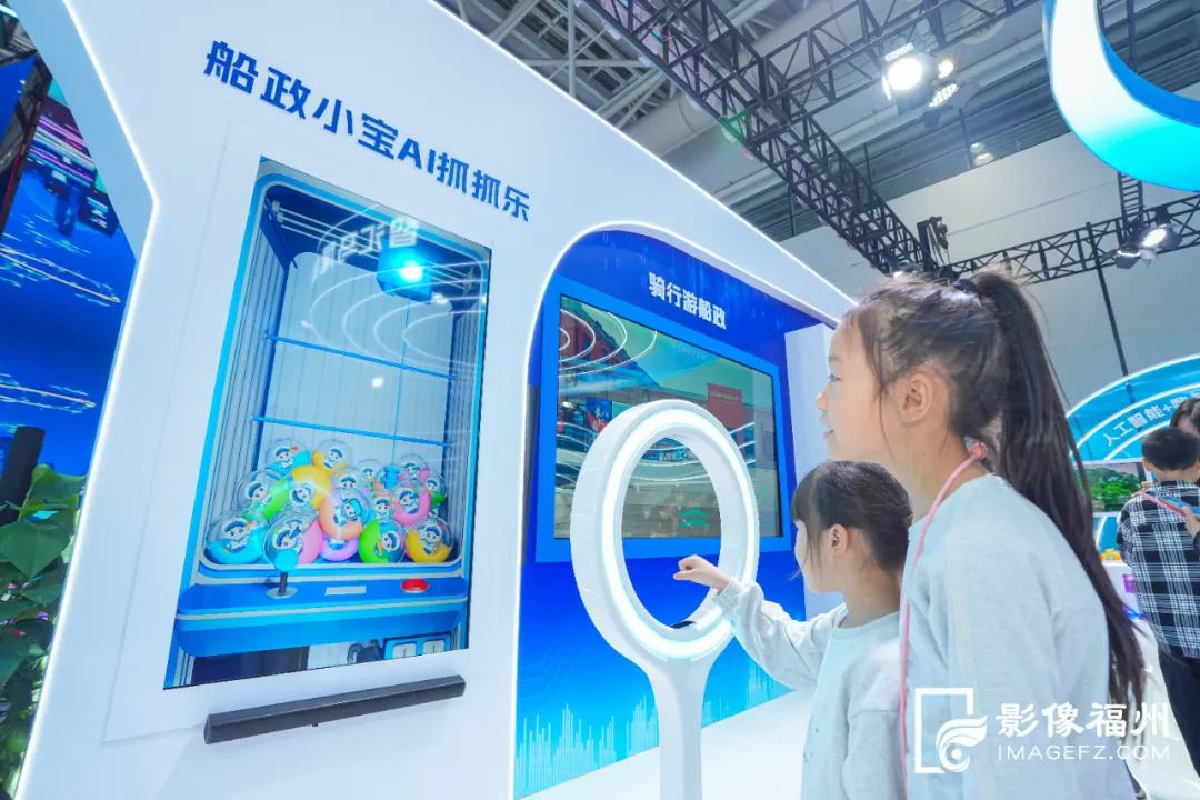 孩子们体验船政小宝AI抓抓乐游戏 原浩/摄